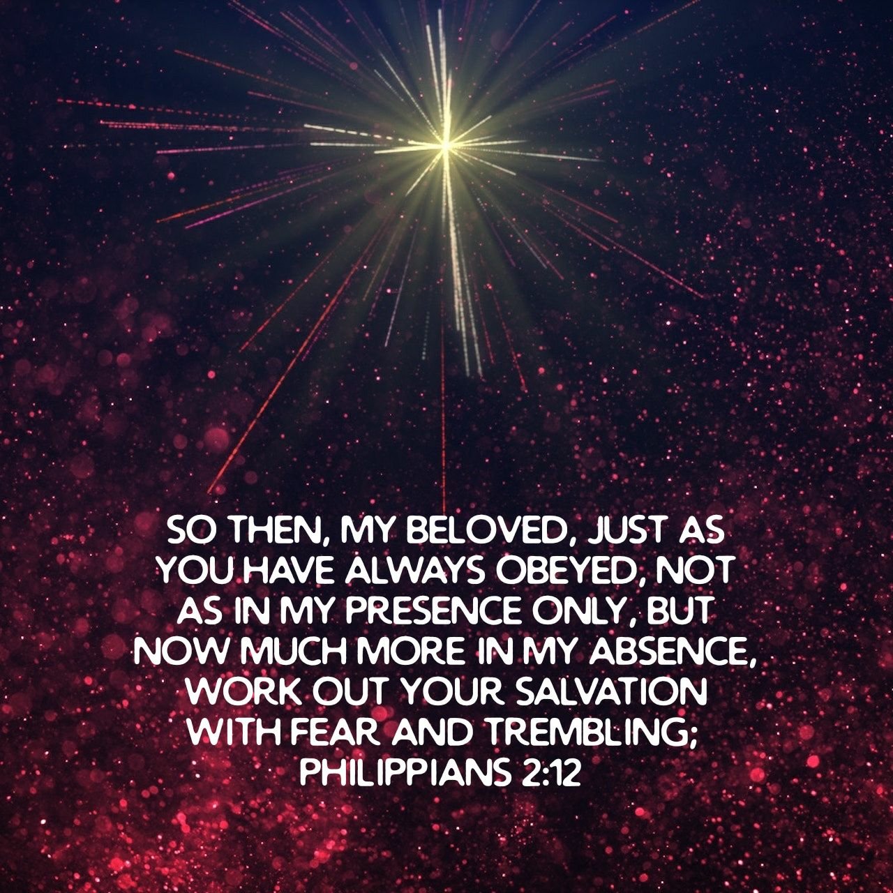 So then, my beloved, just as you have always obeyed, not as in my presence only, but now much more in my absence, work out your salvation with fear and trembling;