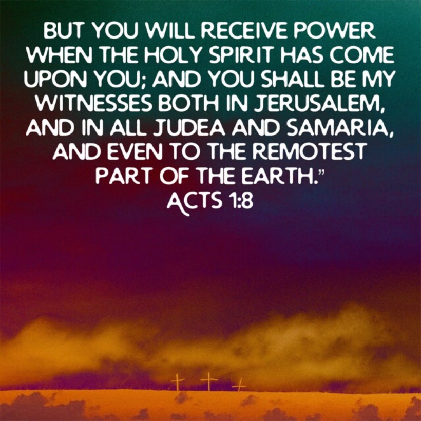 Give us power to be your witnesses, Lord. June 11, 2019 Arw27 www.bible.com/100/act.1.8.nasb Share this: Click to share on Facebook (Opens in new window) Facebook Click to share on Pinterest (Opens in new window) Pinterest Click to share on LinkedIn (Opens in new window) LinkedIn Click to share on X (Opens in new window) X Click to email a link to a friend (Opens in new window) Email More Click to share on X (Opens in new window) X Like Loading... Related