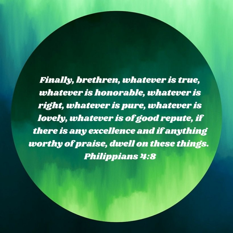 Finally, brethren, whatever is true, whatever is honorable, whatever is right, whatever is pure, whatever is lovely, whatever is of good repute, if there is any excellence and if anything worthy of praise, dwell on these things.