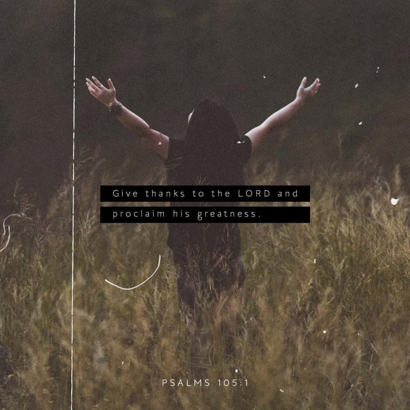 May our day be filled with Thanksgiving, of our God, and our mouths proclaim his Awesomeness. February 13, 2020 Arw27 www.bible.com/100/psa.105.1-2.nasb Share this: Click to share on Facebook (Opens in new window) Facebook Click to share on Pinterest (Opens in new window) Pinterest Click to share on LinkedIn (Opens in new window) LinkedIn Click to share on X (Opens in new window) X Click to email a link to a friend (Opens in new window) Email More Click to share on X (Opens in new window) X Like Loading... Related