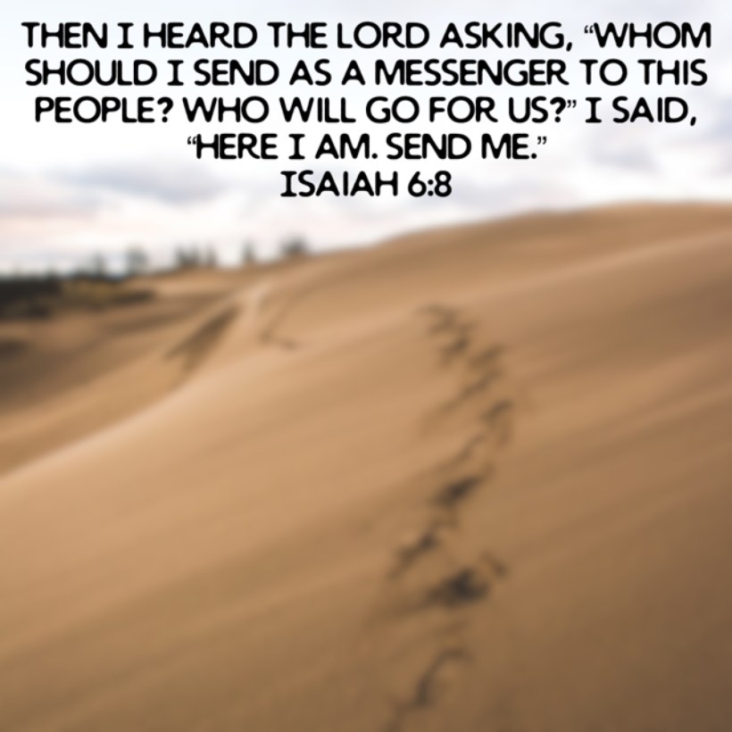 Lord, may we be a willing servant, to go where you send us today. May your word go forth, through these weak vessels, that you may use, to give you Glory. Amen