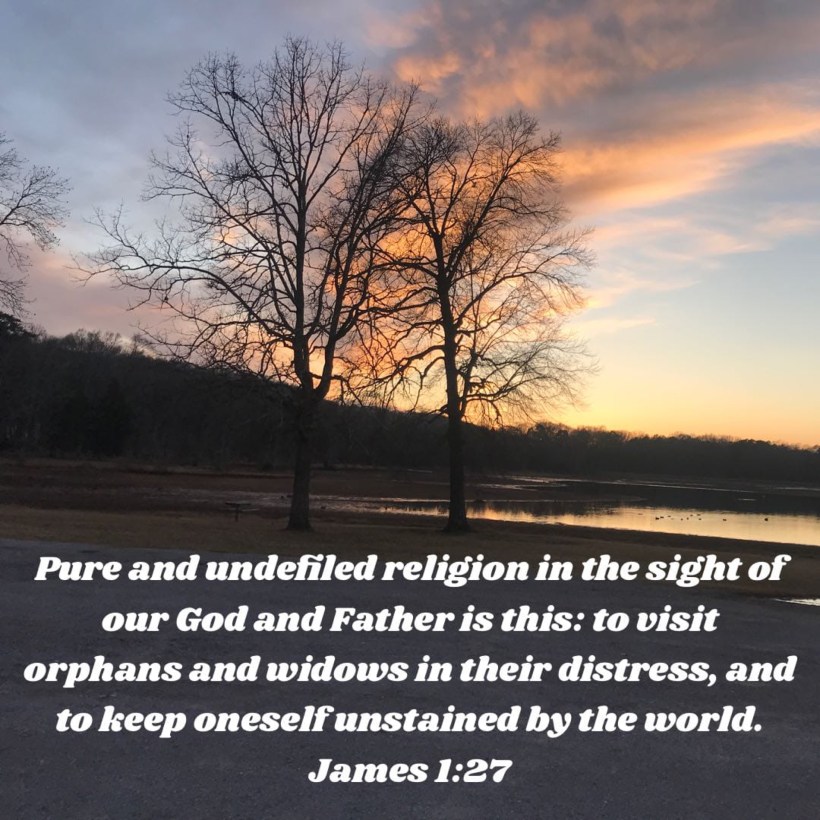 Pure and undefiled religion. James picks two synonymous adjectives to define the most spotless kind of religious faith—that which is measured by compassionate love (cf. Jn 13:35 ). orphans and widows. Those without parents or husbands were and are an especially needy segment of the church ( see notes on 1Ti 5:3 ; cf. Ex 22:22 ; Dt 14:28 , 29 ; Ps 68:5 ; Jer 7:6 , 7 ; 22:16 ; Ac 6:1–6 ). Since they are usually unable to reciprocate in any way, caring for them clearly demonstrates true, sacrificial, Christian love.