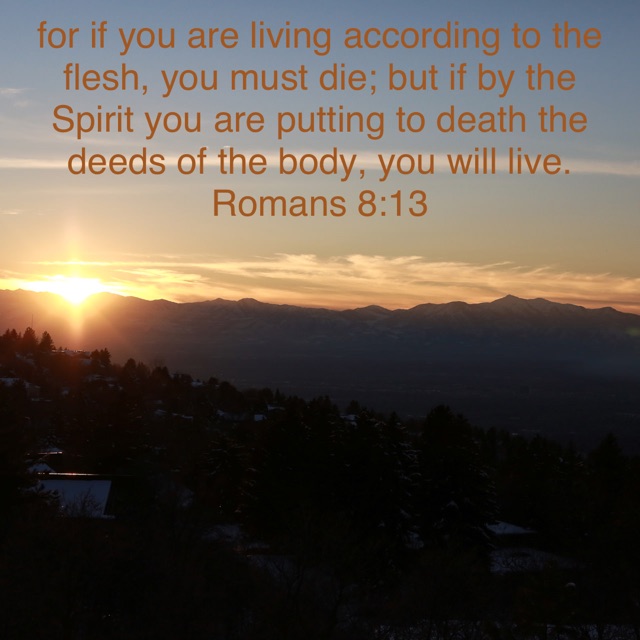 Our flesh and blood are weak, but when we live by the Spirit, that can only be given by God, we live. January 2, 2023January 2, 2023 Arw27 bible.com/bible/100/rom.8.13.NASB1995 Share this: Click to share on Facebook (Opens in new window) Facebook Click to share on Pinterest (Opens in new window) Pinterest Click to share on LinkedIn (Opens in new window) LinkedIn Click to share on X (Opens in new window) X Click to email a link to a friend (Opens in new window) Email More Click to share on X (Opens in new window) X Like Loading... Related