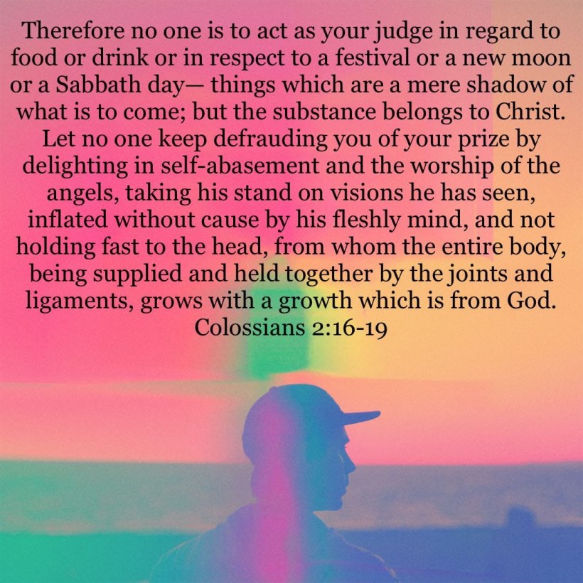 Let no one be your judge….. February 18, 2023 Arw27 bible.com/bible/100/col.2.16-19.NASB1995 Share this: Click to share on Facebook (Opens in new window) Facebook Click to share on Pinterest (Opens in new window) Pinterest Click to share on LinkedIn (Opens in new window) LinkedIn Click to share on X (Opens in new window) X Click to email a link to a friend (Opens in new window) Email More Click to share on X (Opens in new window) X Like Loading... Related