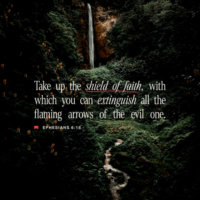 This faith and hope above all else, protects us from all kinds of Satan’s temptations to sin. Satan’s temptations are his lies and promises of pleasure, happiness and self-gratification for the moment. These temptations are the flaming arrows of Satan and just like the Roman soldiers oil treated shield quenched the flaming arrows of the enemy, our faith will quench Satan’s flaming arrows. Just like Roman soldiers, we must stand together, shoulder to shoulder, 8 to 16 rows deep in our faith, and it is together that we will resist Satan’s temptations.