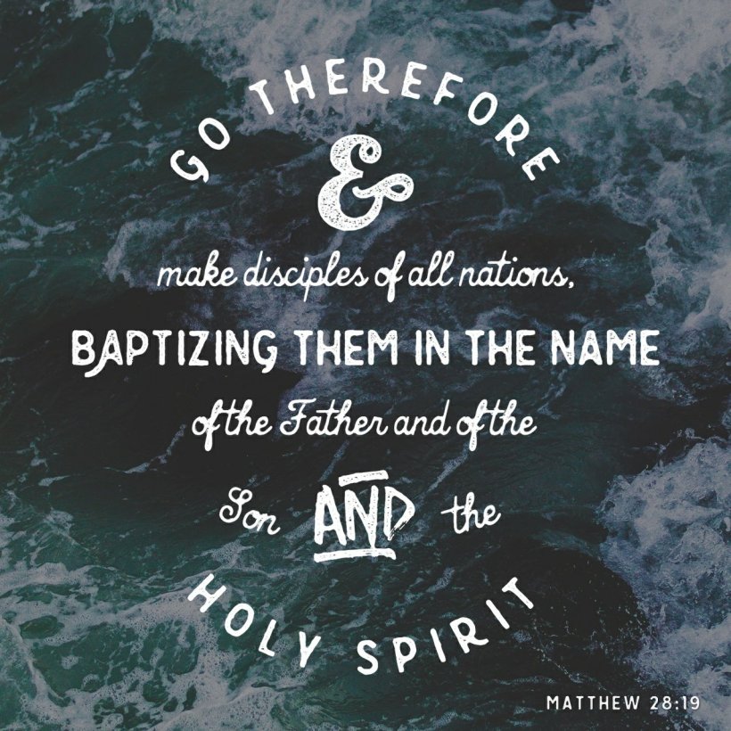 Go therefore and make disciples of all the nations, baptizing them in the name of the Father and the Son and the Holy Spirit,