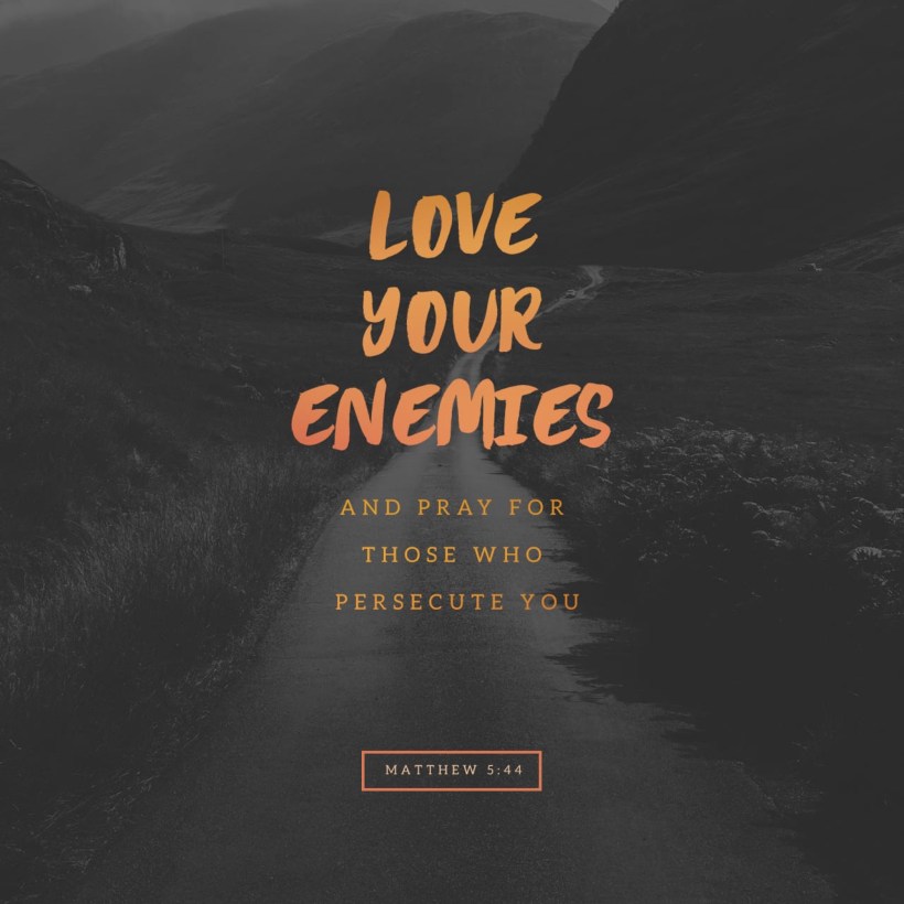 This path is long and weary at times, but we must do it in HIS strength, not our own. He will carry us, to where we need to go, in times when we don’t have the physical strength. Fill us with your spirit today, oh Lord. Your Power is made perfect in our weakness. Let us have compassion to love in the midst of darkness. You showed us the way, as you loved us, in spite of our own darkness and sin. How can we not do more, than just love those who love us. Forgive those, as you have forgiven us. December 30, 2020 Arw27 www.bible.com/100/mat.5.44.nasb1995 Share this: Click to share on Facebook (Opens in new window) Facebook Click to share on Pinterest (Opens in new window) Pinterest Click to share on LinkedIn (Opens in new window) LinkedIn Click to share on X (Opens in new window) X Click to email a link to a friend (Opens in new window) Email More Click to share on X (Opens in new window) X Like Loading...