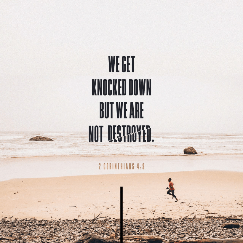 But we have this treasure in earthen vessels, so that the surpassing greatness of the power will be of God and not from ourselves; we are afflicted in every way, but not crushed; perplexed, but not despairing; persecuted, but not forsaken; struck down, but not destroyed; 2 Corinthians 4:7-9 NASB https://bible.com/bible/100/2co.4.7-9.NASB