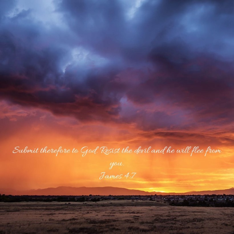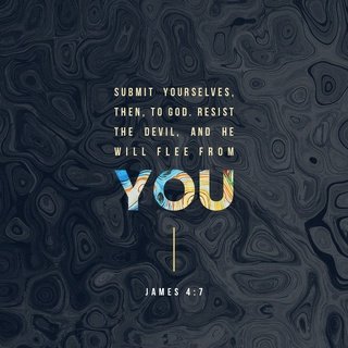 Submit. Lit. “to line up under.” The word was used of soldiers under the authority of their commander. In the NT, it describes Jesus’ submission to His parents’ authority (Lk 2:51), submission to human government (Ro 13:1), the church’s submission to Christ (Eph 5:24), and servants’ submission to their masters (Titus 2:9; 1Pe 2:18). James used the word to describe a willing, conscious submission to God’s authority as sovereign ruler of the universe. A truly humble person will give his allegiance to God, obey His commands, and follow His leadership (cf. Mt 10:38). Resist the devil and he will flee from you. The flip side of the first command. “Resist” literally means “take your stand against.” All people are either under the lordship of Christ or the lordship of Satan (Jn 8:44; Eph 2:2; 1Jn 3:8; 5:19); there is no middle ground. Those who transfer their allegiance from Satan to God will find that Satan “will flee from” them; he is a defeated foe.