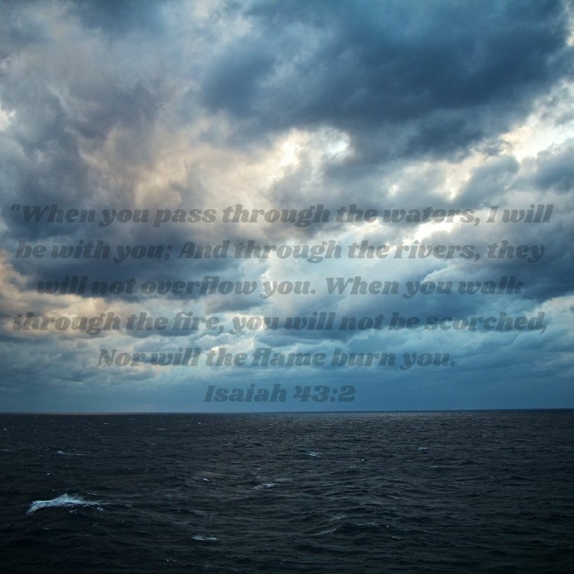 “When you pass through the waters, I will be with you; And through the rivers, they will not overflow you. When you walk through the fire, you will not be scorched, Nor will the flame burn you.