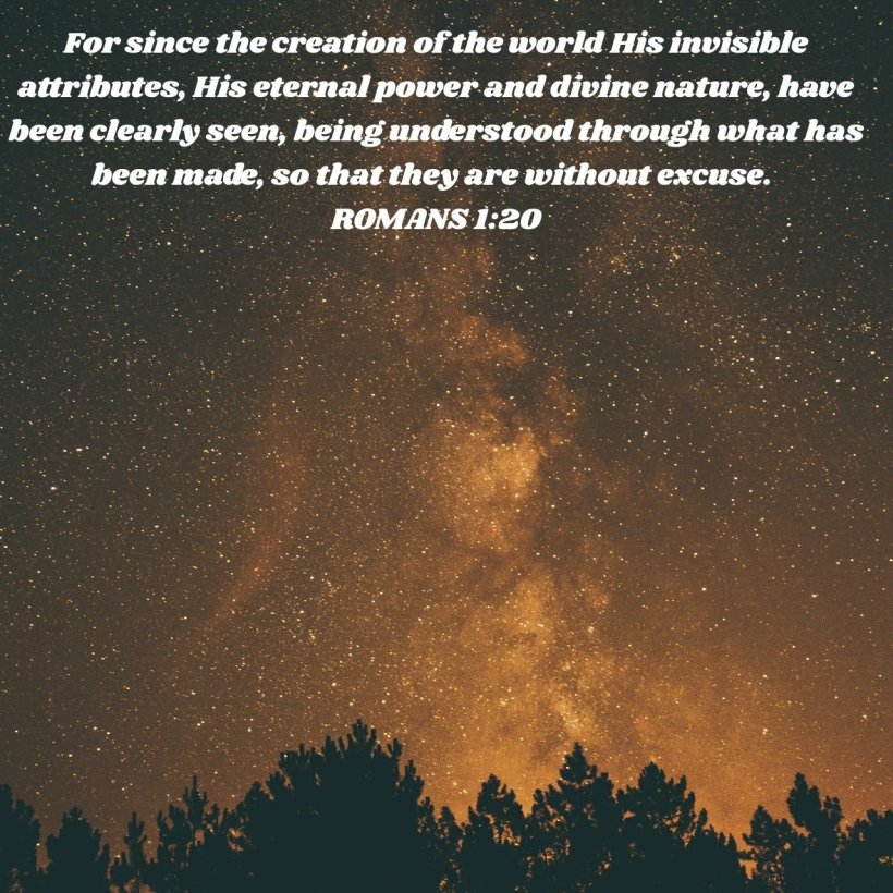 For since the creation of the world His invisible attributes, His eternal power and divine nature, have been clearly seen, being understood through what has been made, so that they are without excuse.