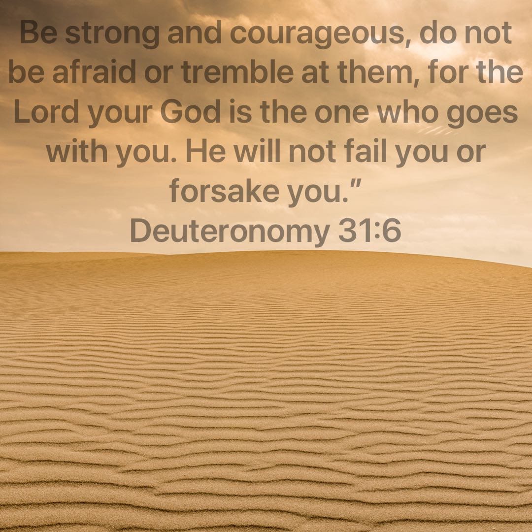 The strength and courage of the warriors of Israel would come from their confidence that their God was with them and would not forsake them. In vv. 7, 8, Moses repeated the substance of his exhortation, this time addressing it specifically to Joshua in the presence of the people to encourage him and to remind the people that Joshua’s leadership was being assumed with the full approval of God.being assumed with the full approval of God.