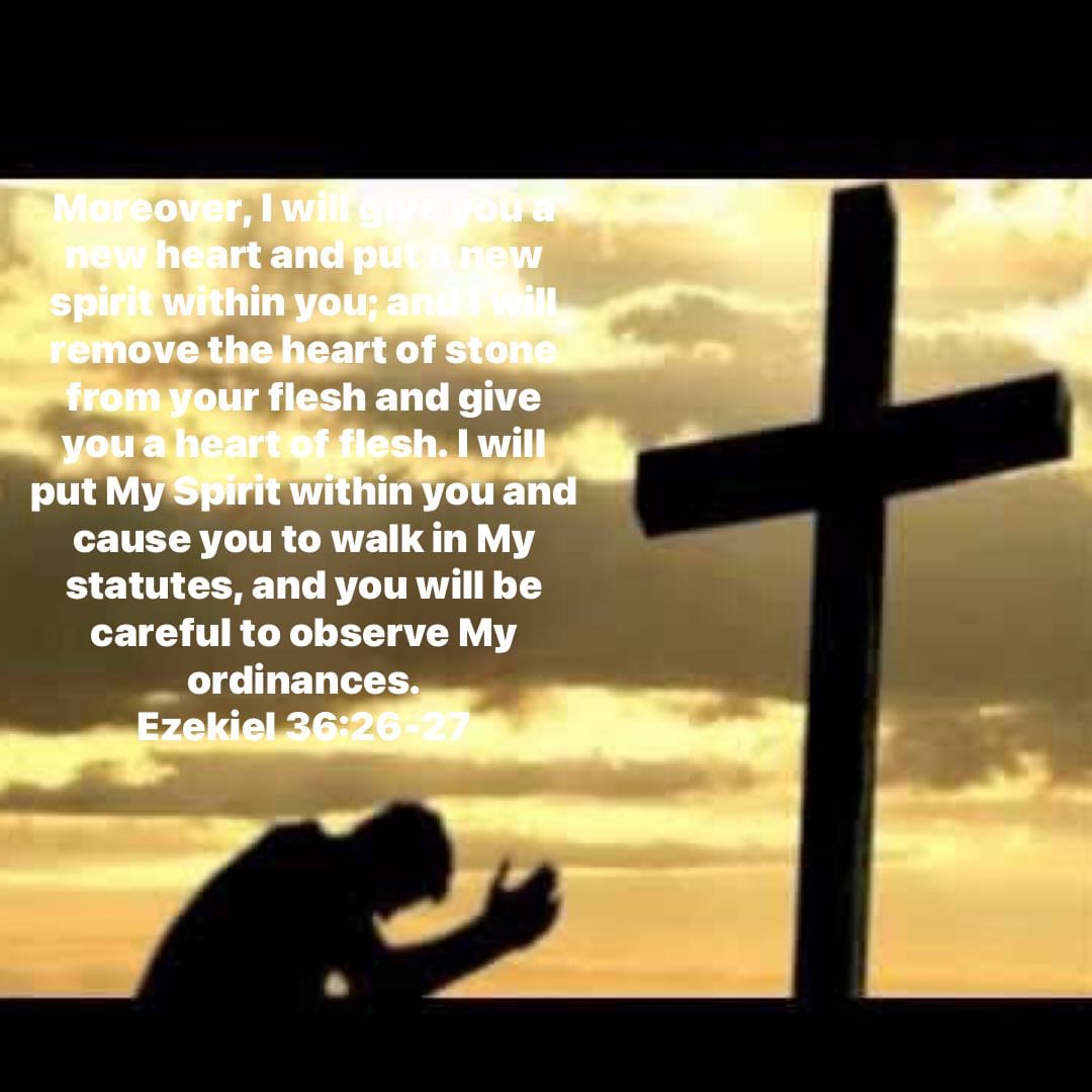What was figuratively described in v. 25 is explained as literal in vv. 26, 27. The gift of the “new heart” signifies the new birth, which is regeneration by the Holy Spirit (cf. 11:18–20). The “heart” stands for the whole nature. The “spirit” indicates the governing power of the mind which directs thought and conduct. A “heart of stone” is stubborn and self-willed. A “heart of flesh” is pliable and responsive. The evil inclination is removed and a new nature replaces it. This is New Covenant character as in Jer 31:31–34. The Lord will also give His “Spirit” to the faithful Jews (cf. 39:29; Is 44:3; 59:21; Joel 2:28, 29; Ac 2:16ff.). When Israel becomes the true people of God (v. 28), the judgment promise of Hosea 1:9 is nullified. All nature will experience the blessings of Israel’s salvation (vv. 29, 30). When the Jews have experienced such grace, they will be even more repentant—a sign of true conversion (v. 31). Ezekiel profoundly proclaims the doctrines of conversion and spiritual life. He includes forgiveness (v. 25), regeneration (v. 26), the indwelling Holy Spirit (v. 27), and the responsive obedience to God’s law (v. 27). These are all clearly presented as he prophesies Israel’s conversion. As a nation, they will truly know their God (v. 38), hate their sin (vv. 31, 32), and glorify their Savior (v. 32). † 36:32 not … for your sake. God’s glory and reputation among the nations, not Israel’s, causes this restoration to be promised (cf. Ps 115:1; Ac 5:41; Ro 1:5; 3Jn 7).