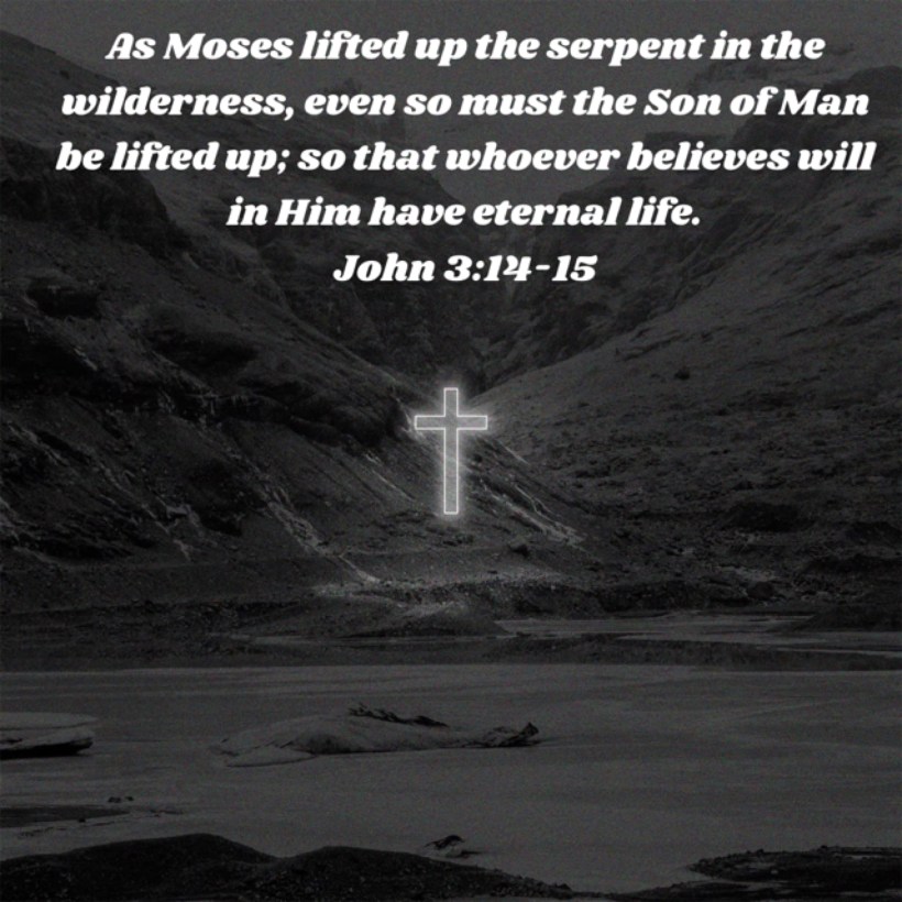 This is a veiled prediction of Jesus’ death on the cross. Jesus referred to the story of Nu 21:5–9 where the Israelite people who looked at the serpent lifted up by Moses were healed. The point of this illustration or analogy is in the “lifted up.” Just as Moses lifted up the snake on the pole so that all who looked upon it might live physically, those who look to Christ, who was “lifted up” on the cross, will live spiritually and eternally.